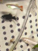 正解:(反転よろ)⇒ 幾匹の魚 水槽の中。 ドット模様の壁紙